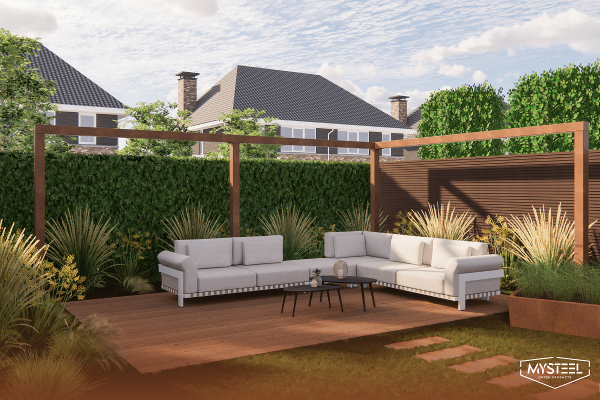 În plus, oțelul are un aspect modern și este disponibil în diverse culori. La MySteel poți găsi pergole din oțel în oțel corten și 204 nuanțe vopsite. Astfel, poți alege întotdeauna o culoare care se potrivește perfect grădinii tale. Descoperă mai multe despre modelele noastre în paragraful Pergole MySteel în diverse culori.