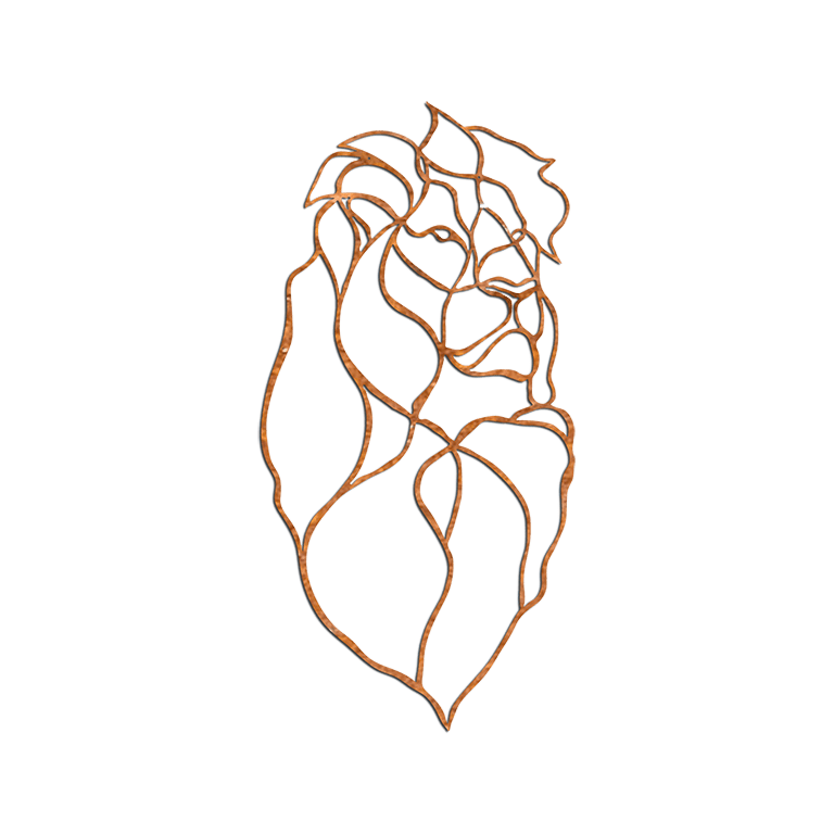 Această artă de perete este fabricată din tablă de oțel Corten-A de înaltă calitate. Acest tip de metal are ca proprietate unică formarea unei pieli de oxid (strat de rugină) foarte dense. Rugina nu poate pătrunde. Datorită pielii de oxid dense, materialul aflat mai adânc este protejat de oxigen, ceea ce încetinește semnificativ oxidarea, în timp ce coroziunea continuă. Decorațiunea de perete este livrată neruginita, în culoarea metalică gri. Începerea procesului de rugină începe în primele 2 luni, pentru care nu este necesită niciun tratament. În timpul procesului de rugină, produsul poate lăsa urme.