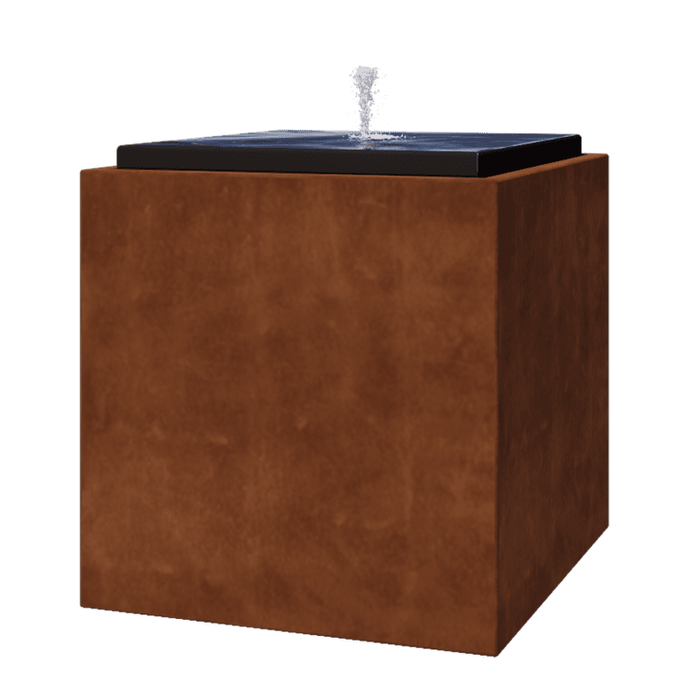 Ornamentul de apă este livrat complet cu pompa corespunzătoare cu cablu. Pompa din interiorul rezervorului asigură că apa este pompată în sus. Apoi, apa va curge peste placa interioară, pentru a cădea din nou în rezervor. Vei trebui să schimbi apa la un ornament de apă din oțel corten în primele luni, până când formarea ruginei este completă. În timpul înghețului, pompa trebuie oprită. Ca opțiune suplimentară, poți alege iluminare LED.