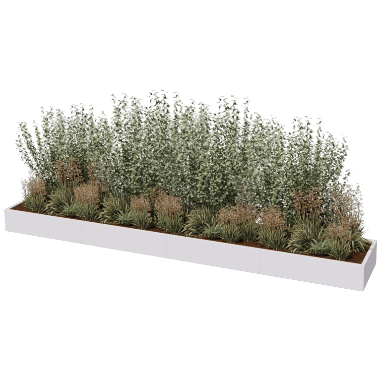 Această jardiniere este o jardiniere modulară din oțel, livrată ca un kit de construcție. Jardinierele sunt asamblate din panouri și colțuri separate. Recipientele pot fi conectate complet invizibil. Nu există prinderi vizibile. Datorită sistemului nostru modular, sunt posibile dimensiuni foarte mari. Folosind colțuri, sunt posibile forme unice care nu sunt disponibile standard în altă parte. Consultați manualul pentru mai multe informații.