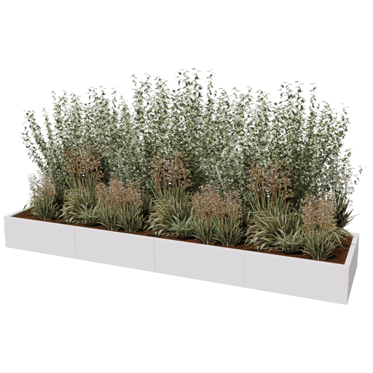 Această jardiniere este o jardiniere modulară din oțel, livrată ca un kit de construcție. Jardinierele sunt asamblate din panouri și colțuri separate. Recipientele pot fi conectate complet invizibil. Nu există prinderi vizibile. Datorită sistemului nostru modular, sunt posibile dimensiuni foarte mari. Folosind colțuri, sunt posibile forme unice care nu sunt disponibile standard în altă parte. Consultați manualul pentru mai multe informații.