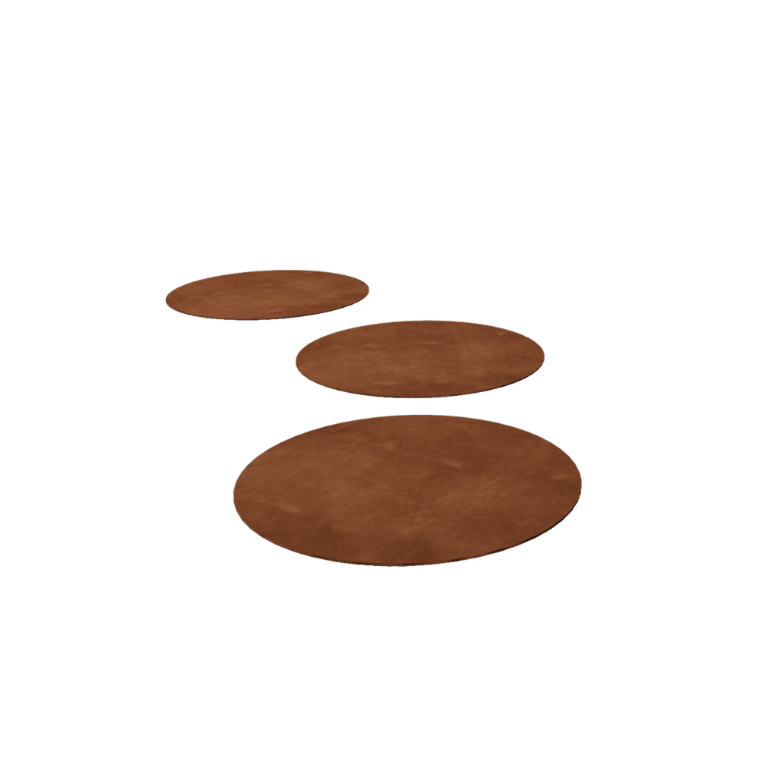 Aceste plăci de trecere, cunoscute și sub numele de pietre de trecere, sunt fabricate din oțel corten, produse în propria noastră fabrică. Ele pot fi plasate practic oriunde în grădină; în pietriș, pe gazon, între plante sau într-un alt loc din grădină. Plăcile de trecere sunt așezate în pământ sau pe gazon. Mașina de tuns iarba poate trece peste ele fără probleme.