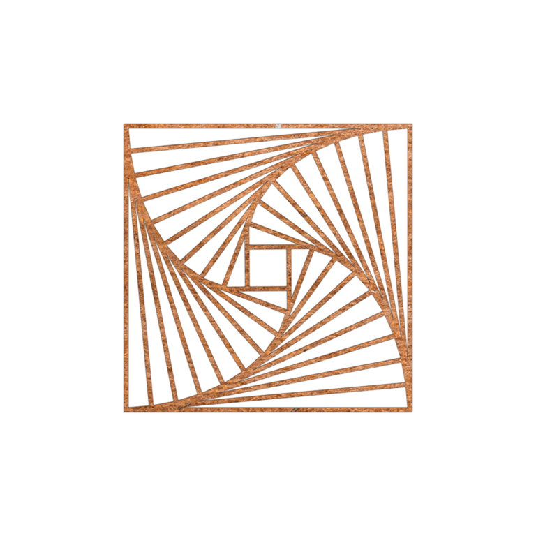 Această artă de perete este fabricată din tablă de oțel Corten-A de înaltă calitate. Acest tip de metal are ca proprietate unică formarea unei pieli de oxid (strat de rugină) foarte dense. Rugina nu poate pătrunde. Datorită pielii de oxid dense, materialul aflat mai adânc este protejat de oxigen, ceea ce încetinește semnificativ oxidarea, în timp ce coroziunea continuă. Decorațiunea de perete este livrată neruginita, în culoarea metalică gri. Începerea procesului de rugină începe în primele 2 luni, pentru care nu este necesită un tratament. În timpul procesului de rugină, produsul poate lăsa urme.
