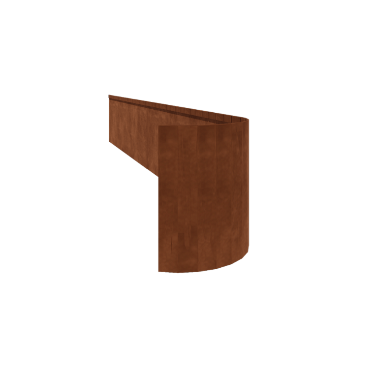 Material Această bordură este fabricată din tablă de oțel Corten-A de înaltă calitate. Acest tip de metal are ca proprietate unică formarea unei pieli de oxid foarte dense (strat de rugină). Prin urmare, rugina nu poate pătrunde. Datorită pielii dense de oxid, materialul aflat mai adânc este protejat de oxigen, ceea ce încetinește semnificativ oxidarea, în timp ce coroziunea continuă. Bordura este livrată neruginita, în culoarea metalică gri. Începerea procesului de rugină începe în primele 2 luni, fără a fi necesară o tratament. În timpul procesului de rugină, bordura poate lăsa urme. Oțelul Corten este o aliaj metalic care constă din fier, la care s-au adăugat cupru, fosfor, siliciu, nichel și crom.