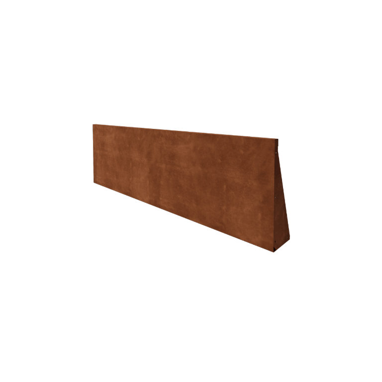 Peretele de sprijin este fabricat din tablă de oțel Corten-A de înaltă calitate. Acest tip de metal are ca proprietate unică formarea unei pieli de oxid foarte dense (strat de rugină). Prin urmare, rugina nu poate pătrunde. Datorită pielii dense de oxid, materialul aflat mai adânc este protejat de oxigen, ceea ce încetinește semnificativ oxidarea, în timp ce coroziunea continuă. Peretele de sprijin este livrat neruginat, în culoarea metalică gri. Începerea procesului de rugină începe în primele 2 luni, pentru care nu este necesară nicio tratament. În timpul procesului de rugină, peretele de sprijin poate lăsa urme. Oțelul Corten este o aliaje metalică care constă din fier, la care s-au adăugat cupru, fosfor, siliciu, nichel și crom.
